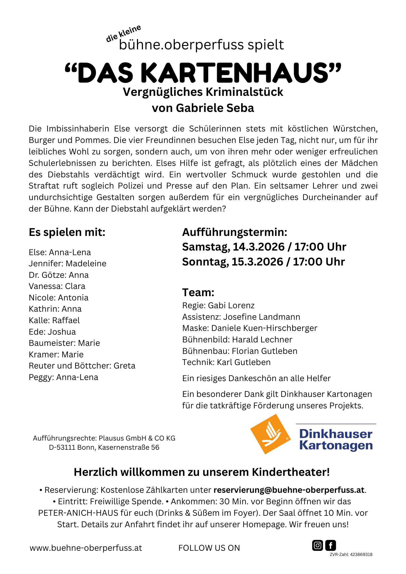 - Reservierung: Kostenlose Zählkarten unter reservierung@buehne-oberperfuss.at.